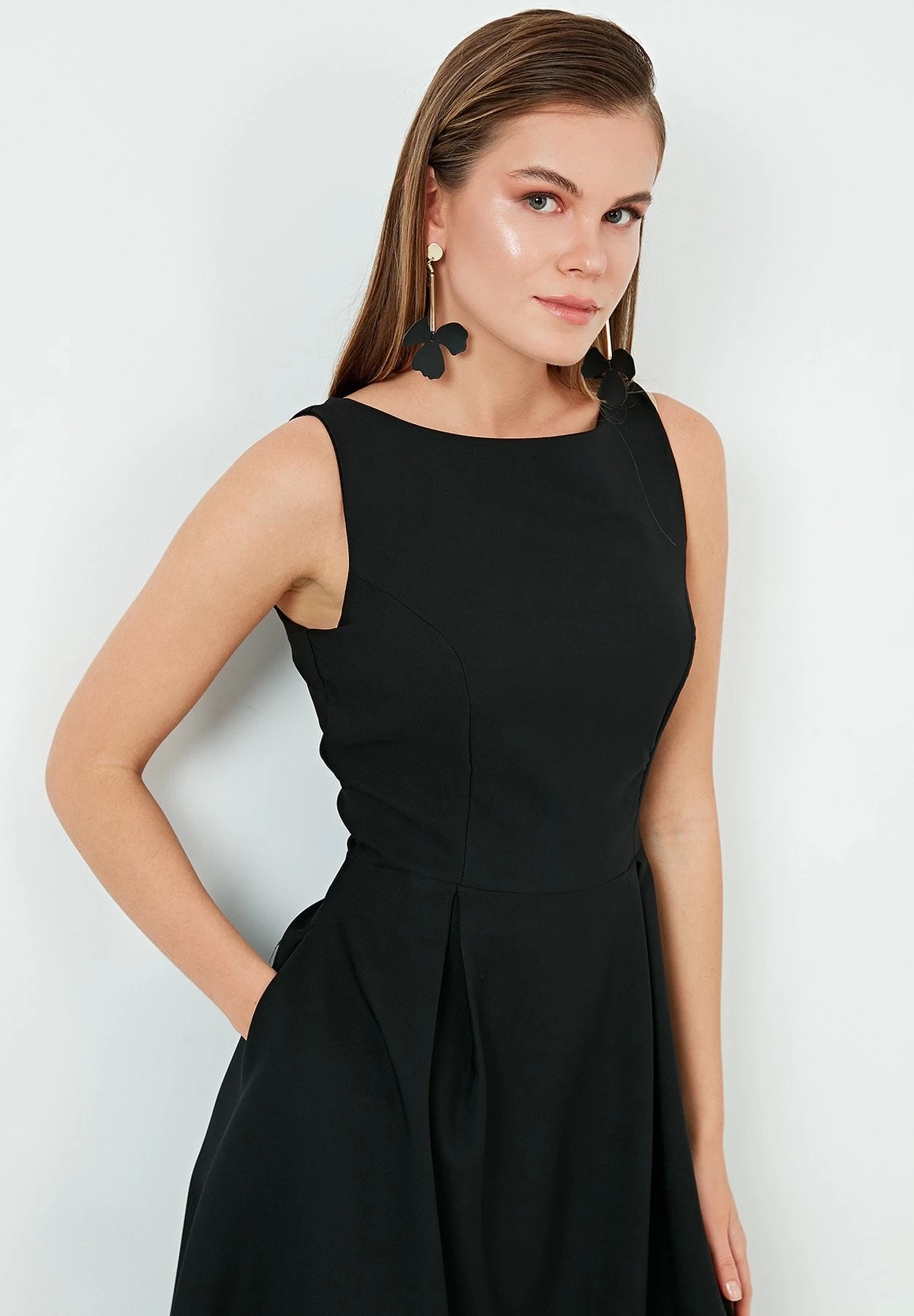 LELA Crew Neck Pleated Midi – Cocktailjurk – Black