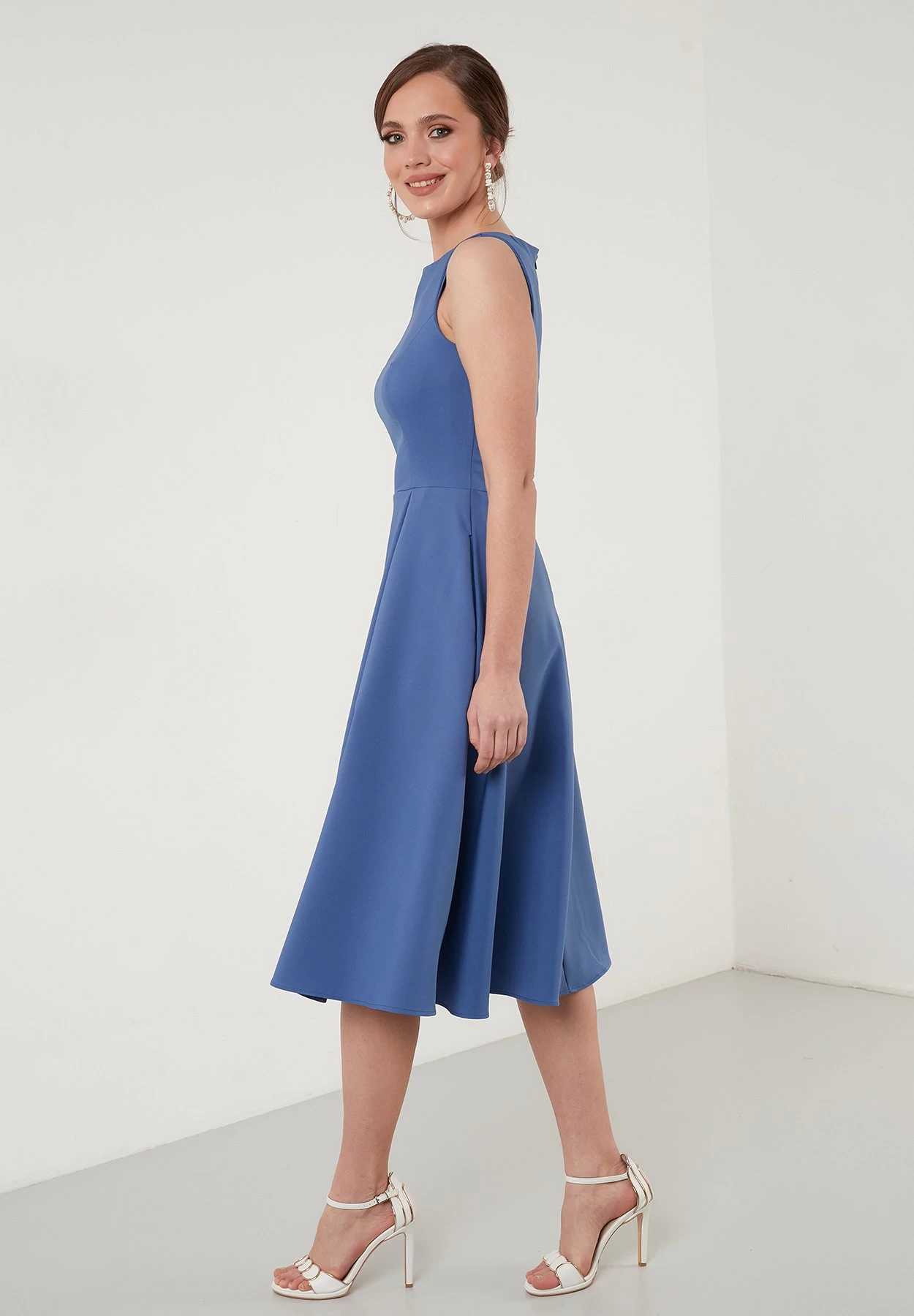 LELA Crew Neck Pleated Midi – Cocktailjurk – Indigo
