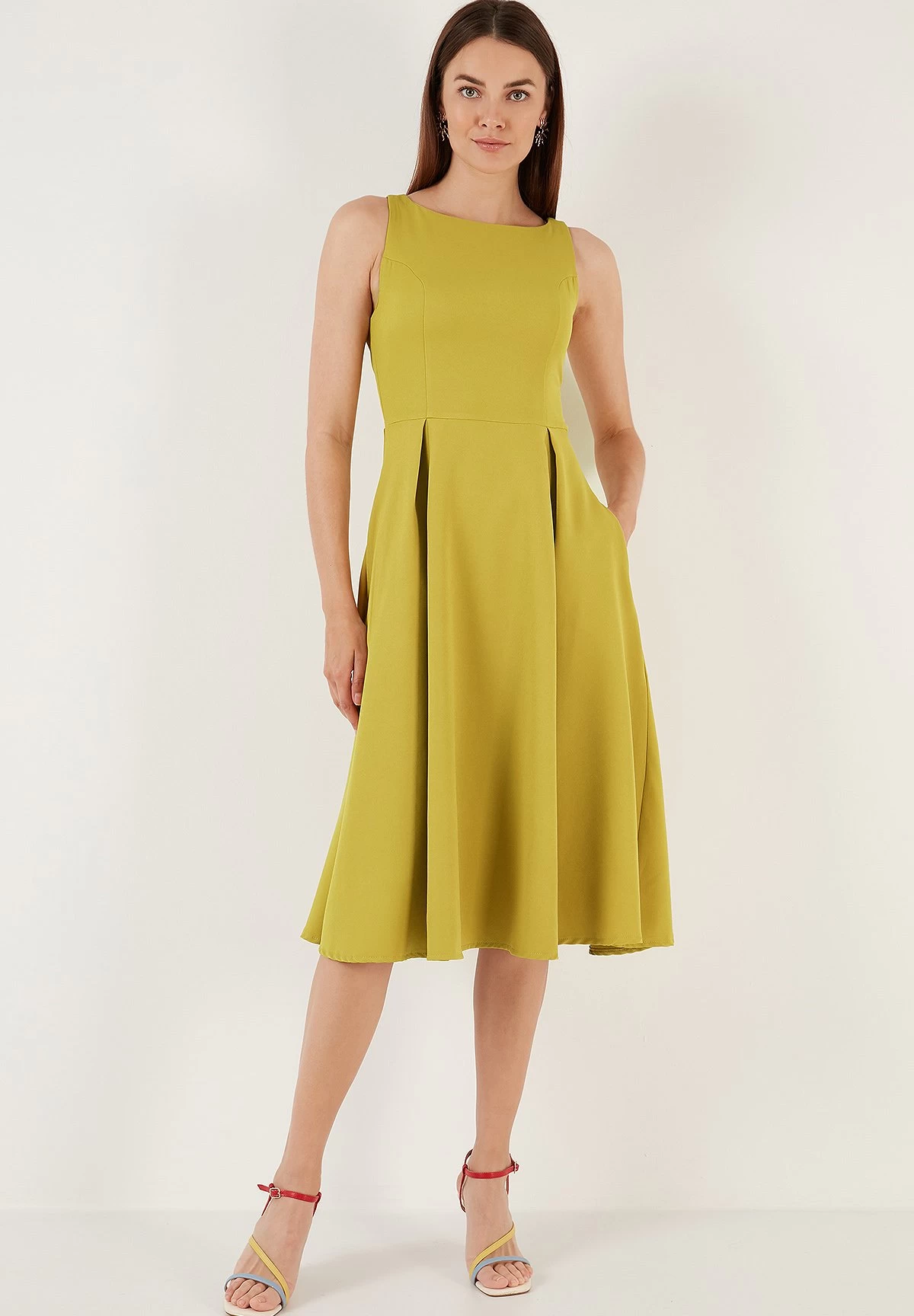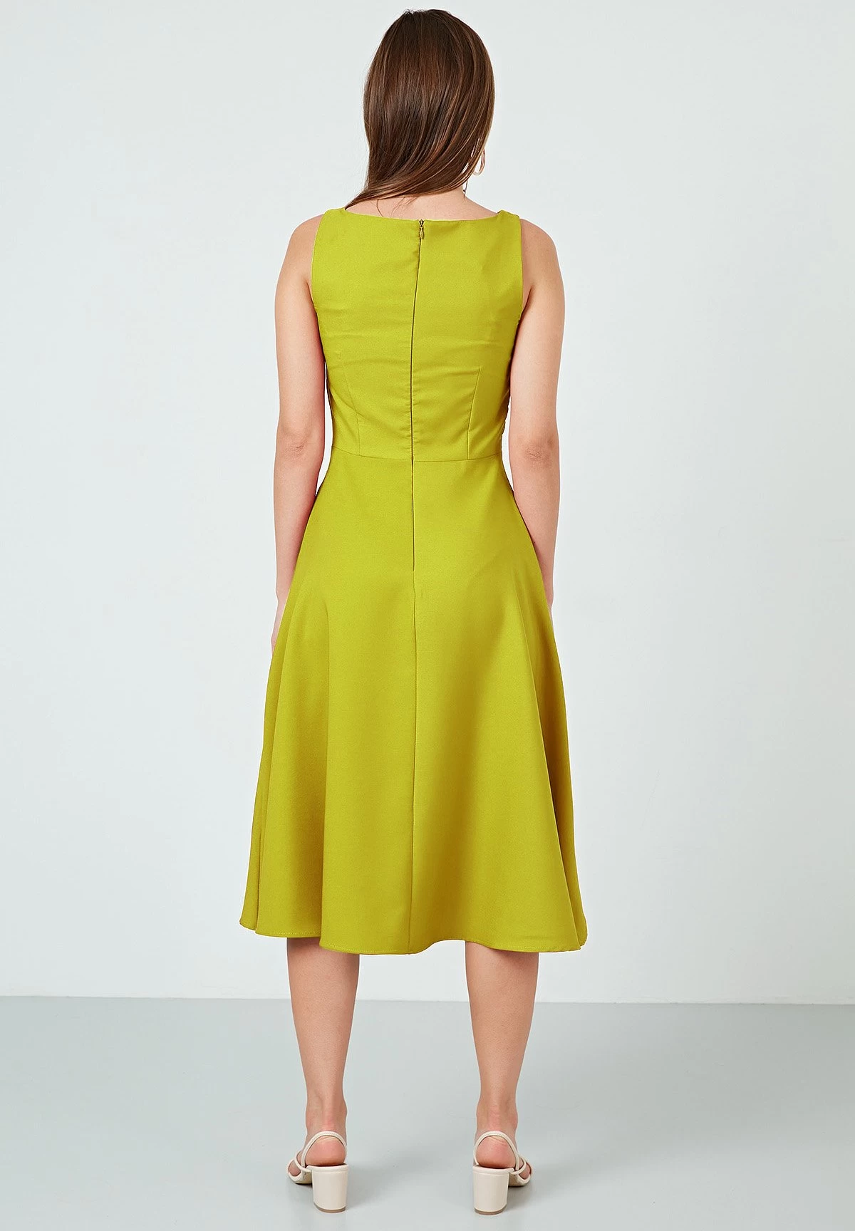 LELA Crew Neck Pleated Midi – Cocktailjurk – Olive