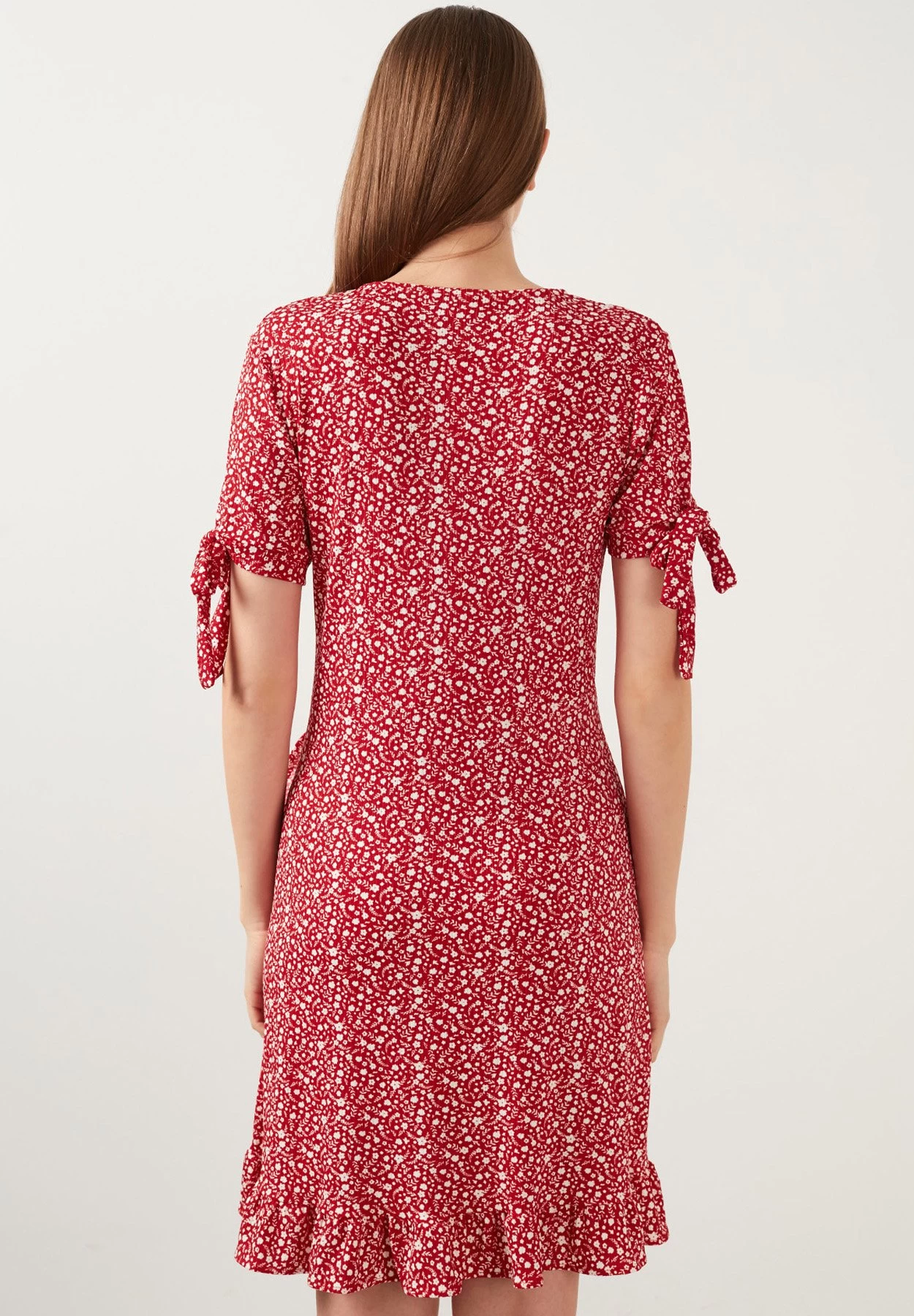 LELA Floral V Neck Ruffle Detail Mini- Jurk – Red