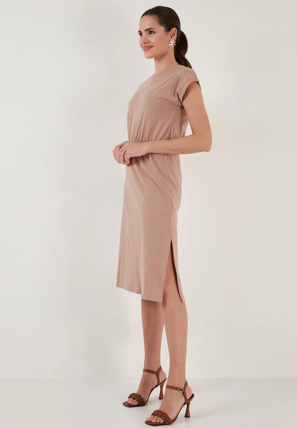 LELA Short Sleeve Midi – Jurk – Biscuit