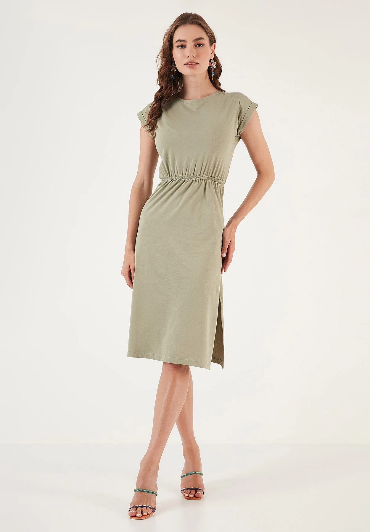 LELA Short Sleeve Midi – Jurk – Olive