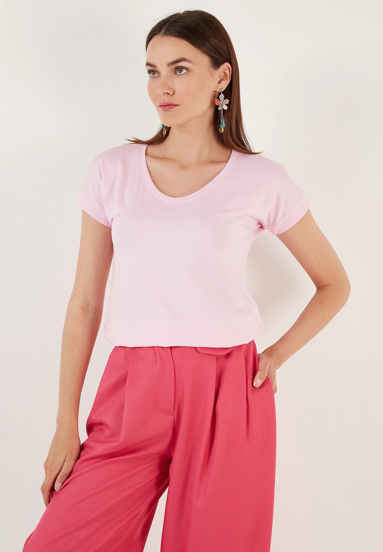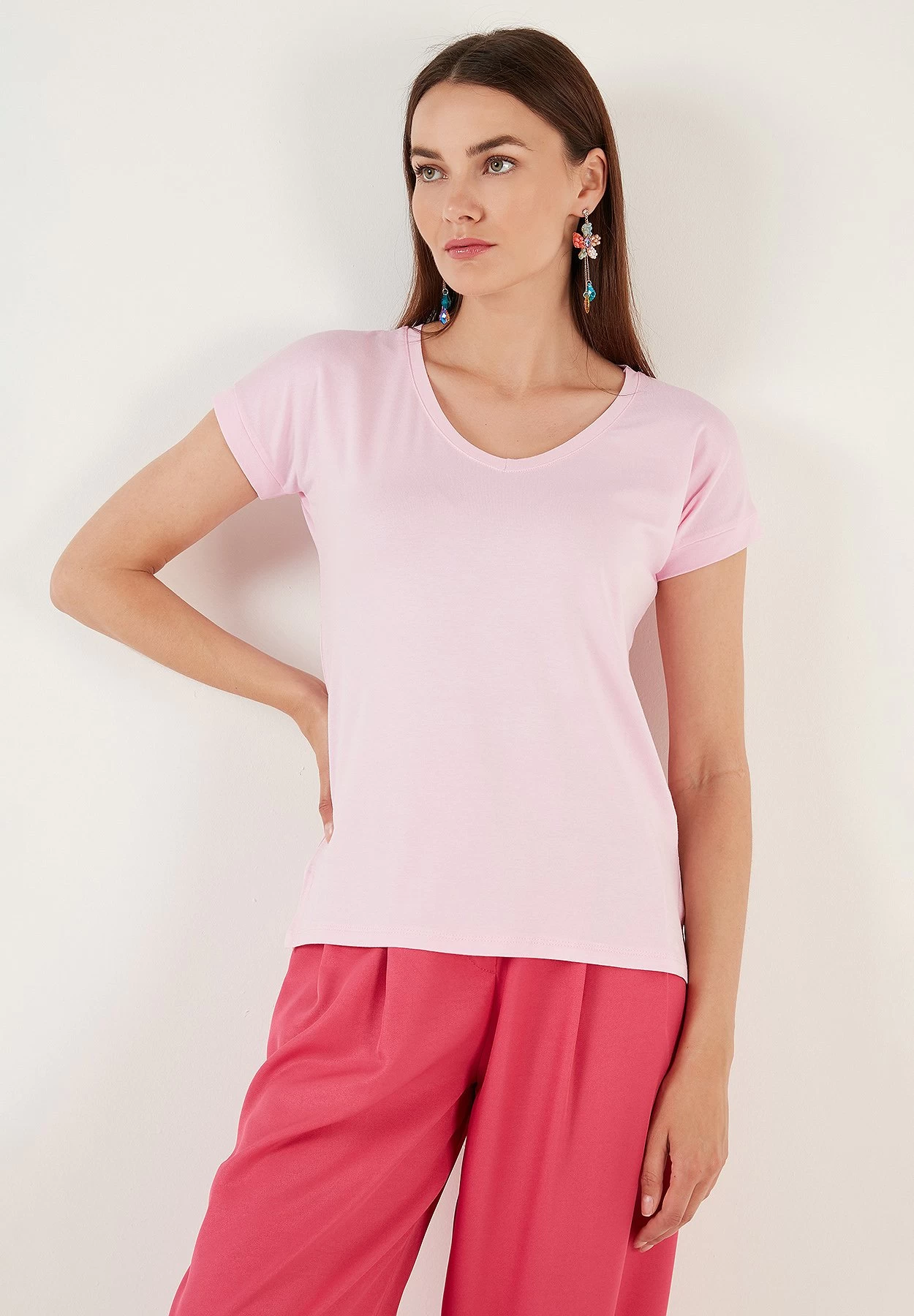 LELA V Neck- T-Shirt Basic – Light Pink