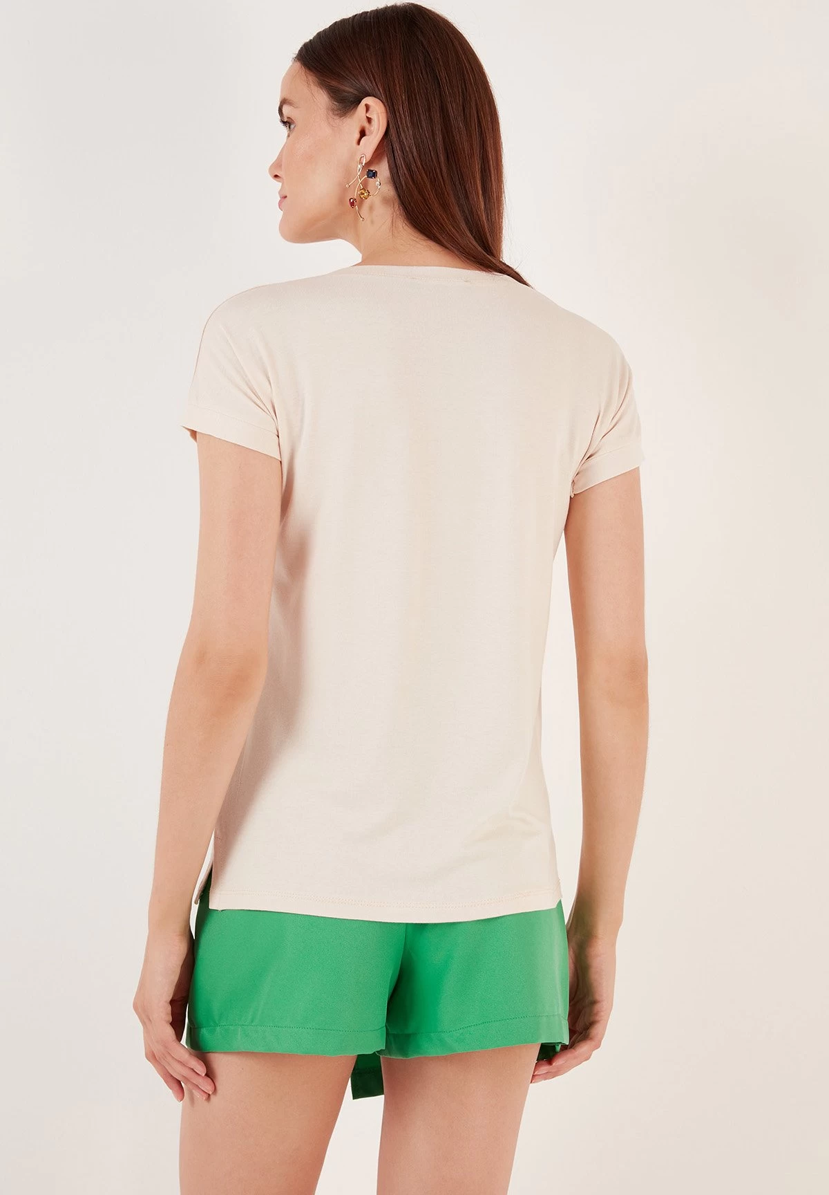 LELA V Neck- T-Shirt Basic – Stone Colored